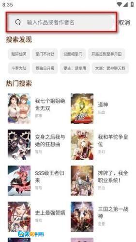 2、接下来在顶部的搜索框中输入作品名称或者作者名字,然后点击“确认”按钮或者“搜索”按钮。