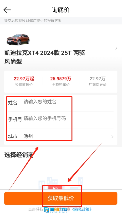 3、填写本人姓名、手机号码及所在城市信息,确认无误后点击“获取低价”,静候消息即可。
