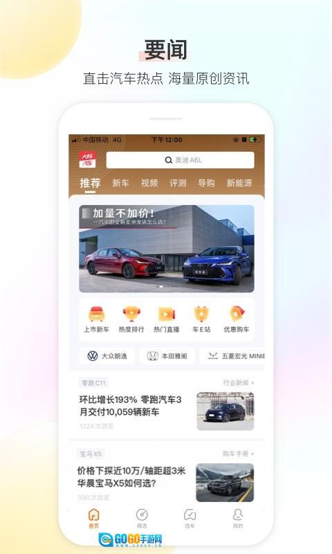 2、汽车资讯浏览操作指南:进入首页后,可查看要闻、行情等栏目板块,从中获取最新的汽车行业动态以及原创内容资讯。