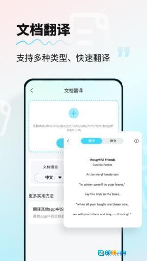 1、文档翻译支持,用户可以上传多种格式的文档,软件迅速为其翻译,极大化简了翻译流程,特别适用于学习和工作中的相关材料。