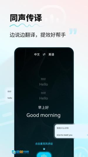 2、同声传译技术,实时翻译用户说出的内容,让交流过程变得更加顺畅和自然,适合会议、演讲等场合使用。
