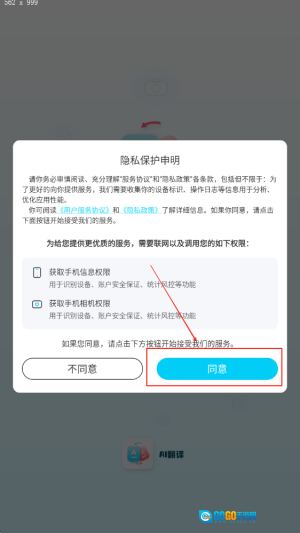 1、选择同意相关条款后进入应用界面,确保获得最佳使用体验,准备进行翻译操作。