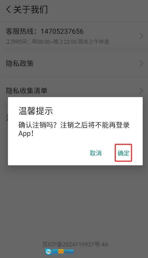 2、选择“注销账号”选项,系统会提示注销后所有数据(涵盖订单、收藏等)将被清空。