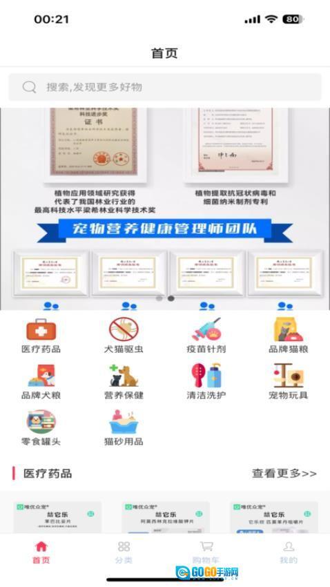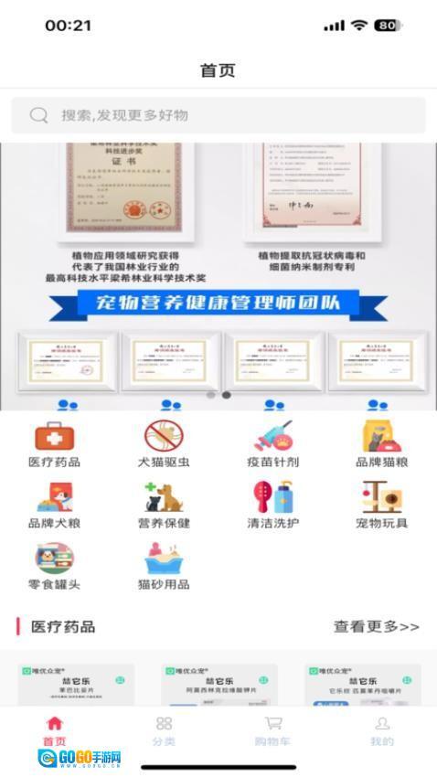 1、挑选宠物类型与商品类别,查看推荐商品。借助筛选条件来缩小选择范围,从而迅速找到心仪的商品。