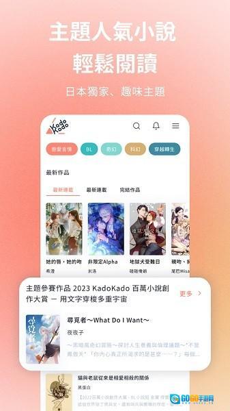 进入KadoKado后,在首页底部找到并点击“更多内容”选项,即可展开完整的小说分类目录。