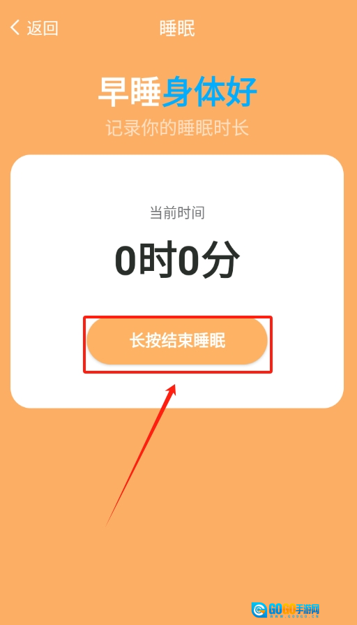 3、睡醒之后,长按“结束睡眠”按钮,就可以知晓自己的睡眠时间长度了。