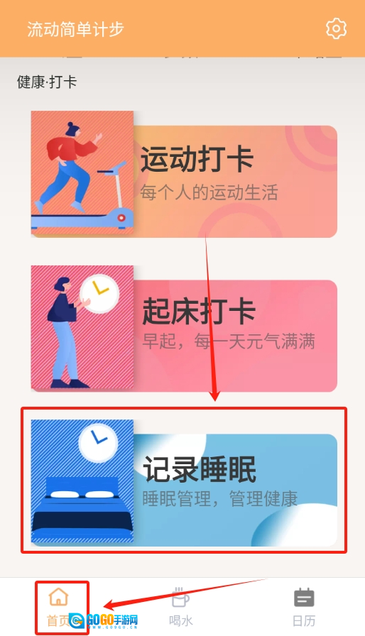 打开软件后,在首页找到“记录睡眠”选项并点击进入。