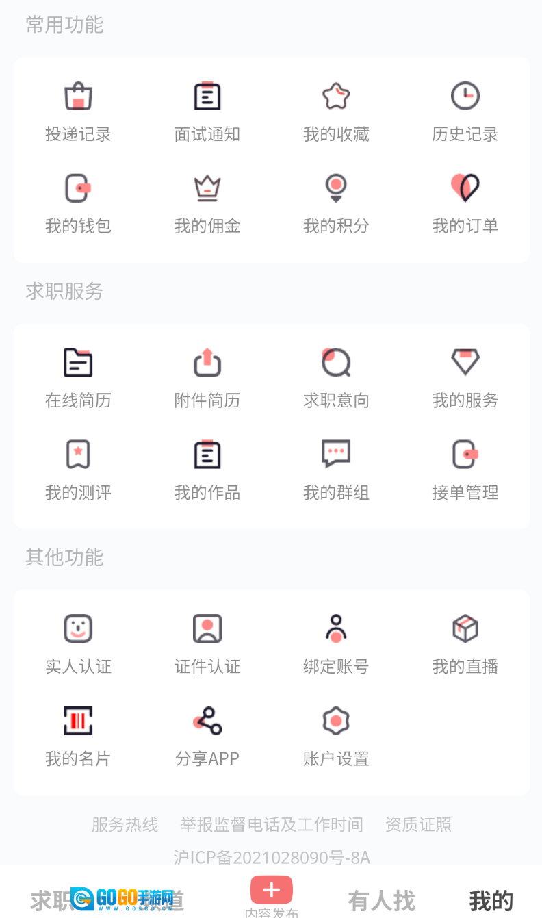 3、完善资料:在个人中心里详细填写个人简历,以及期望工作类型等具体的求职意向信息。