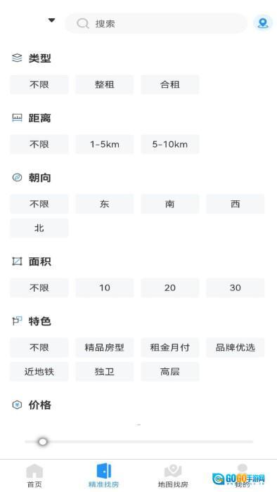 2、多维度条件房源搜索:可依据房源类型、距离、朝向、面积、价格等条件进行筛选,助力精准定位理想房源。