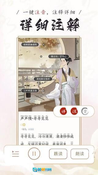 1、诗词赏析界面,全面了解各类经典古诗词。