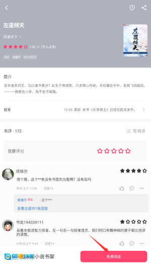 3、在书籍详情页直接点击“免费阅读”按钮,就能开始浏览完整章节内容。