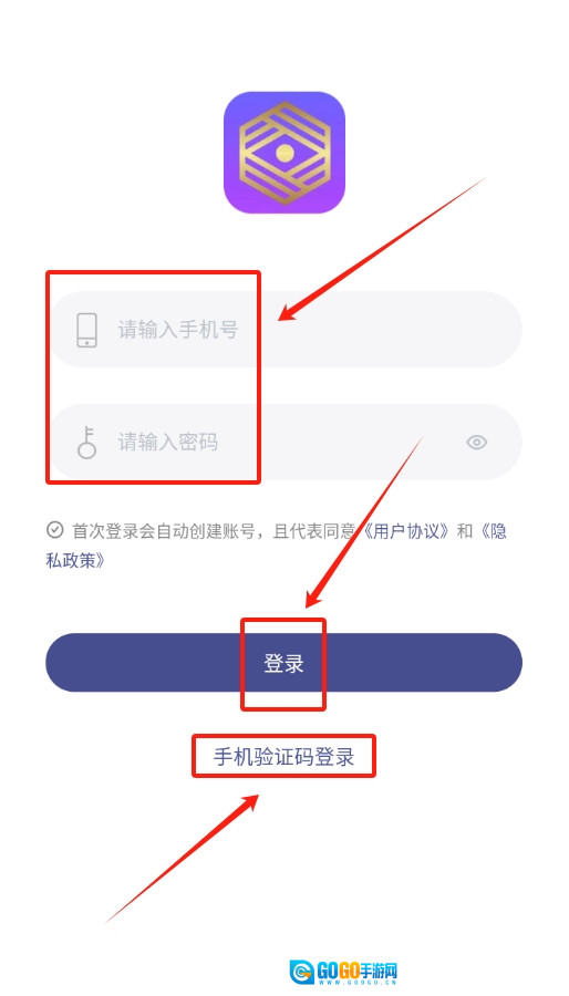 2、打开后会进入登录界面,输入注册时使用的手机号与密码即可完成登录。