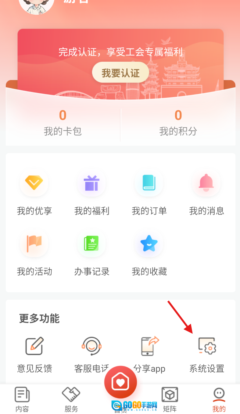 2、进入“我的”页面后,找到“系统设置”这个选项并点击它,就能进入设置界面了。