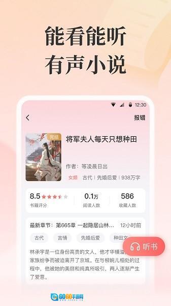 2、阅读时体验舒适流畅,文字排版精美且考究。听书功能制作精良,配音演绎生动又传神,极大地丰富了阅读形式。