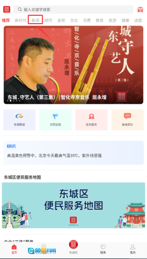 进入北京东城的界面后,在首页的导航栏里找到并点击“新闻”栏目,该栏目会每日更新本地的热点新闻内容。