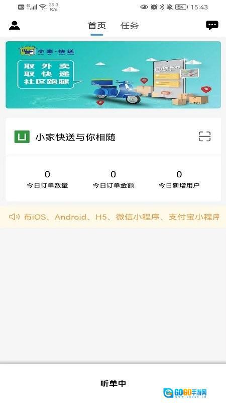 1、应用商店搜索安装:打开手机应用商店,搜索“小家快送跑腿”,安装完成后点击软件图标进入应用。