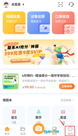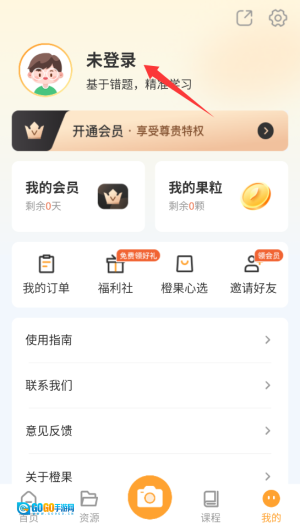 1、打开橙果错题本应用后,点击底部导航栏中的“我的”图标,即可进入账户管理页面。