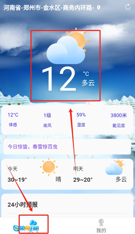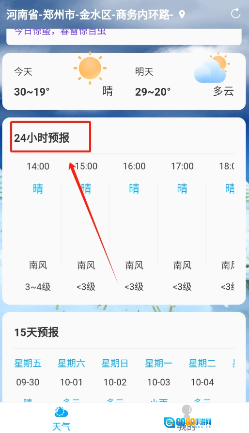 想了解今天全天的天气变化,在软件中即可查看24小时内的天气预报,以便随时做好准备。