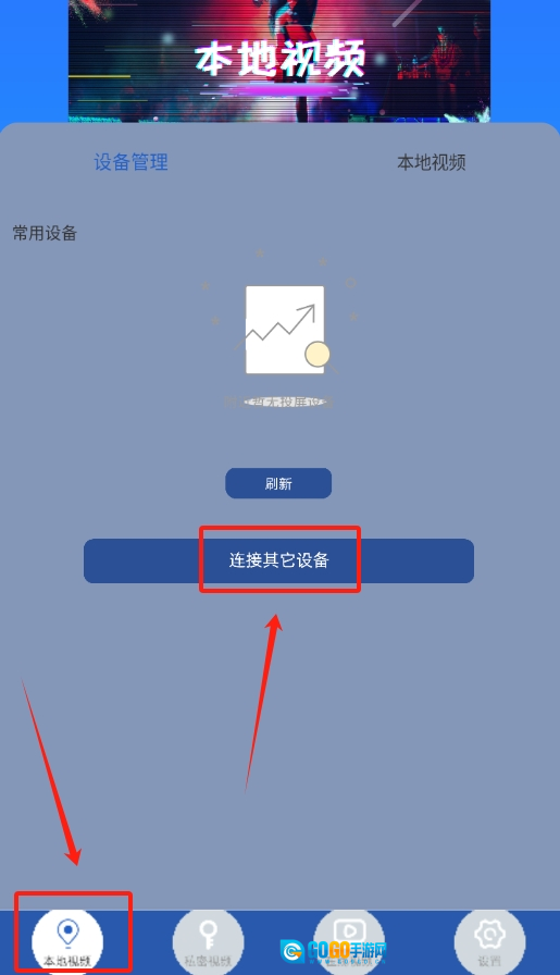 1、启动视频投屏助手应用,进入本地视频界面,点击对应选项即可连接其他设备。