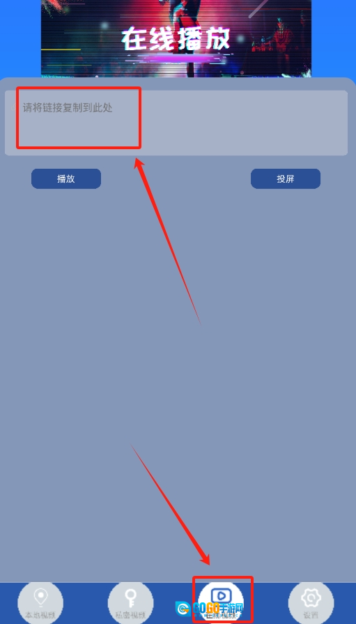 4、在线视频链接投屏操作:在在线播放页面输入有效的视频链接,随后点击投屏按钮就能进行播放。