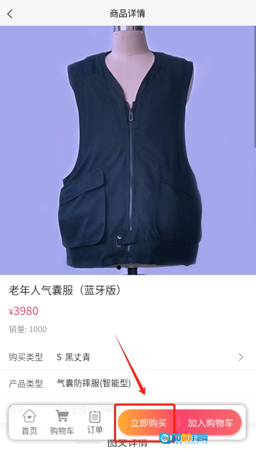 2、要是确定要入手选中的防摔服,那就果断点击右下角的“立即购买”按钮。
