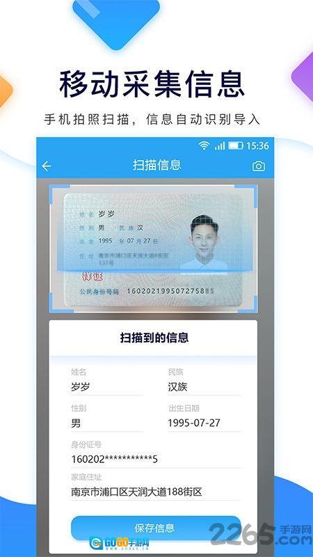 2、智能信息采集识别处理功能:借助手机客户端的拍照扫描功能,可直接导入身份信息并进行智能识别处理,既节省时间又十分便捷。