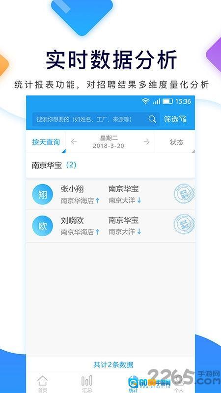 4、查看分析招聘数据报表:于数据统计板块中,查看针对招聘结果的多维度分析报表,从而全面把握整体招聘状况。