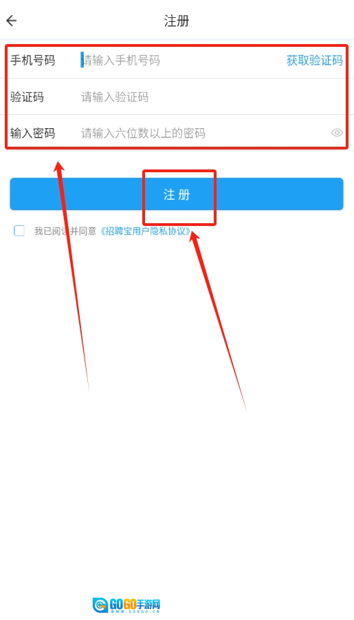 3、新用户注册时,先输入手机号获取验证码,接着填写收到的验证码,最后设置密码,就能完成账号注册流程。