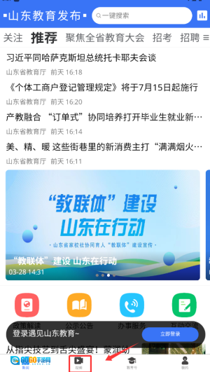 1、进入山东教育发布后,在首页导航栏点击“视频”栏目,该栏目汇聚了各类教育相关的视频资源。