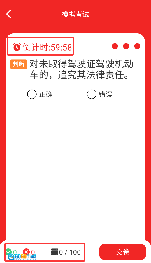 2、仿真考试严格遵循交管部门的命题规则进行组卷,能够实时呈现倒计时以及答题正确率。