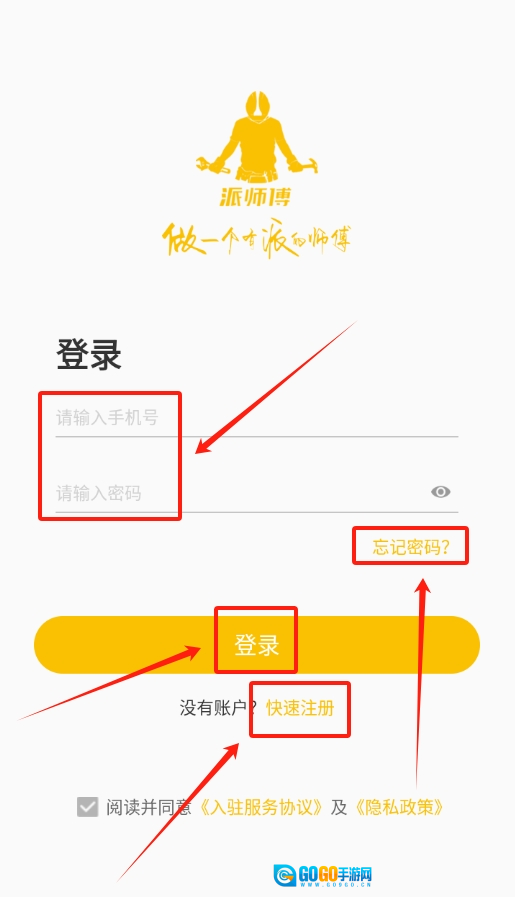 1、完成安装与账号注册:在应用市场搜索“派师傅”,安装完成后,依据提示完成注册流程并成功登录账号。