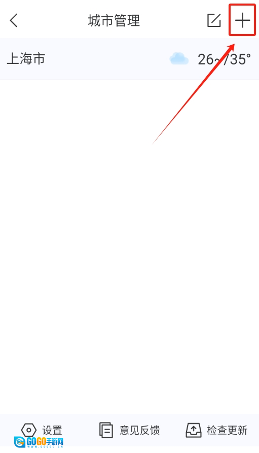 1、打开软件后直接查看首页,在页面右上角有一个用于添加城市的加号按钮,点击该按钮即可启动相关操作。