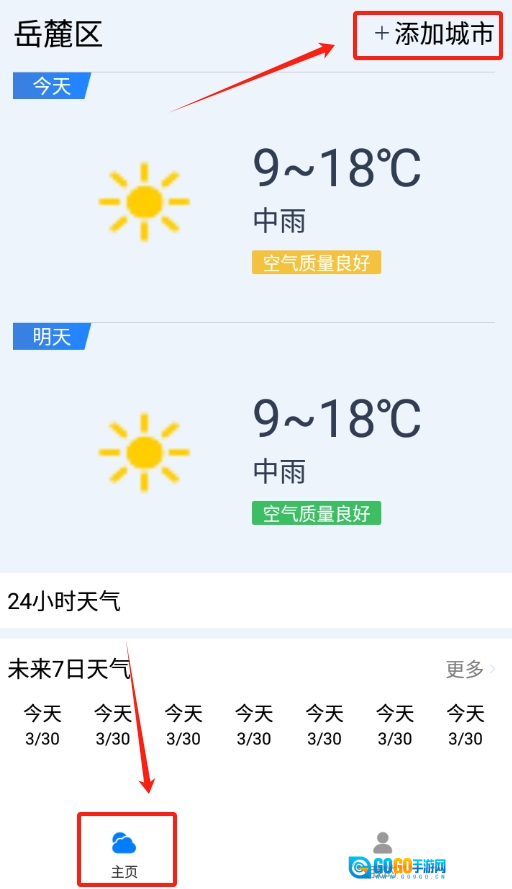1、软件及安装操作步骤:在应用商店搜索向阳天气预报,完成安装后打开并进入软件主界面。