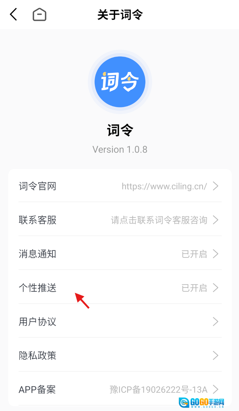 2、在软件的设置相关板块里找到“个性推送”选项并点击,进入到个性化推荐的设置界面。
