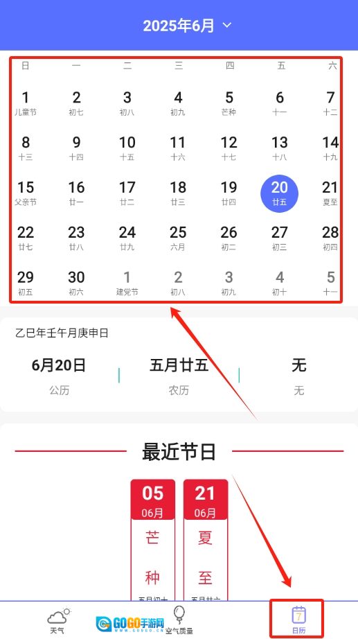 3、日历页面具备日历功能,节日、节气等内容都可直接查看。