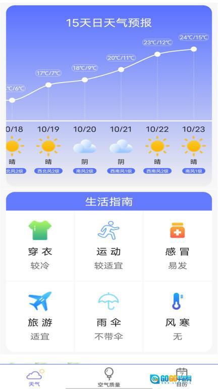 2、功能丰富多样且实用性强:除了基础的天气查询功能外,还配备了日历、生活指数等实用功能,能够充分满足用户的多样化需求。