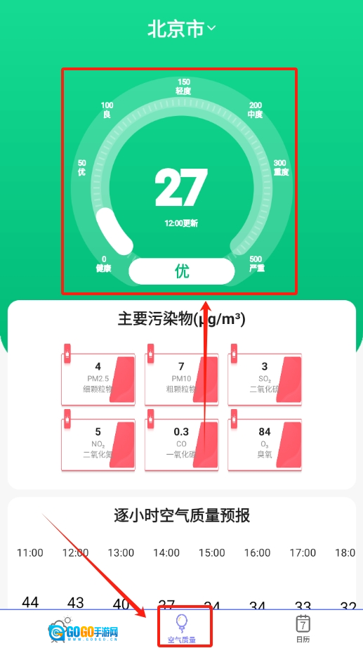 2、进入空气页面后,也能查看空气质量状况,像PM2.5这类指数都会清晰呈现。