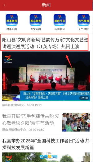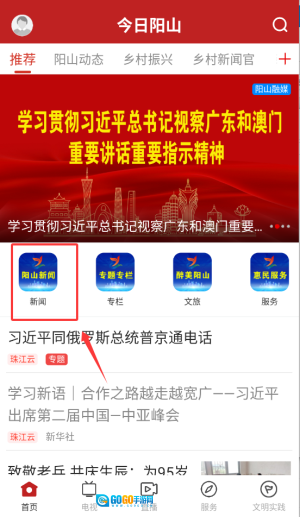 启动今日阳山后,在首页导航栏点击“新闻”栏目,该栏目每日会更新本地的热点新闻。