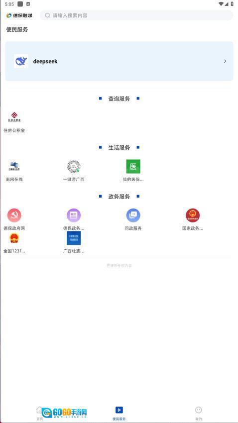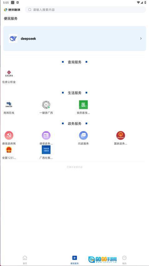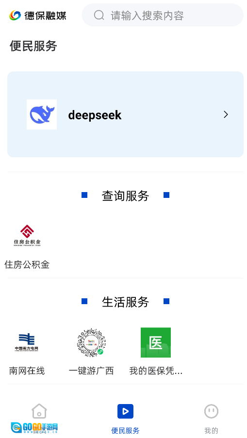 2、进入"便民服务"可使用政务办理功能,包括公积金查询、医保服务等20+项高频便民工具。