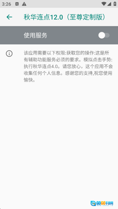 和其他连点器不一样,秋华连点器10.0至尊版不用给手机root,只要打开无障碍服务就行,能保护用户手机的系统安全,并且所有功能都可以完全免费使用,用户不需要花一分钱,有这方面需求的朋友可以来试试。