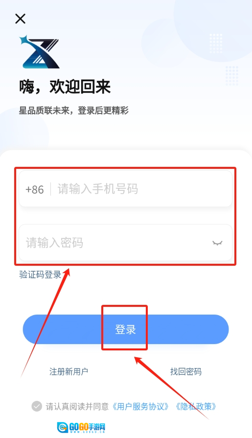 2、在登录界面,依次填入自己的手机号,再输入对应密码,仔细确认无误后,点击登录按钮进入软件。
