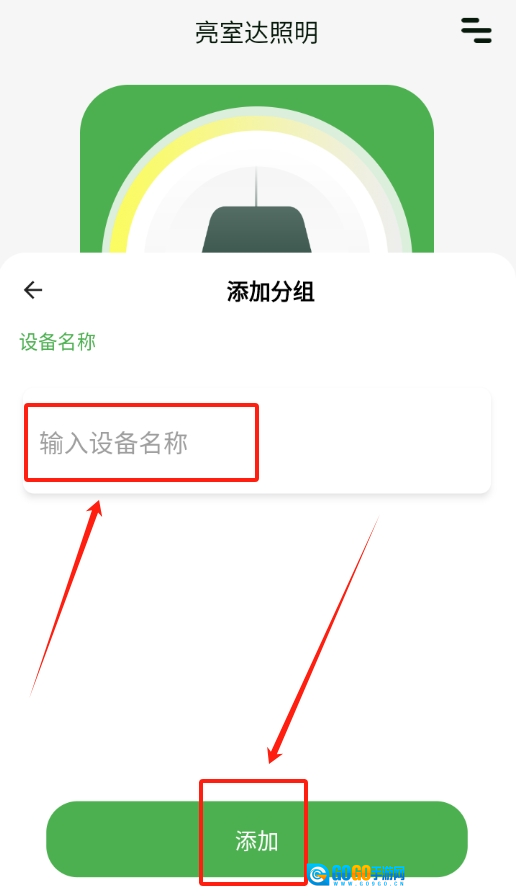 3、选好照明灯后,页面会弹出输入框,在此输入您想给该照明设备设定的名称,输完无误,点击添加,设备就能成功加入。