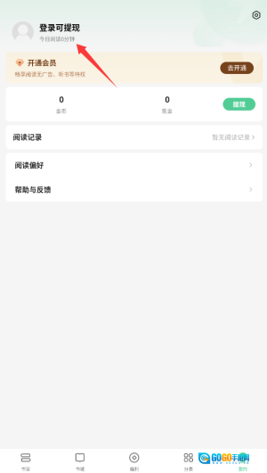 1、进入悠然免费阅读后,点击底部导航栏"我的"图标,进入账户管理页面。