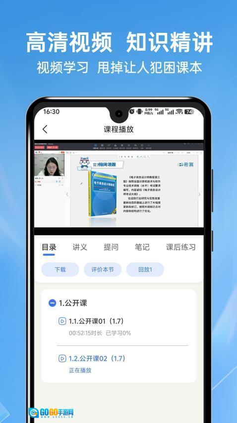 3、进入“课程”学习解读,配套讲义+在线答疑,支持倍速播放和章节测试。
