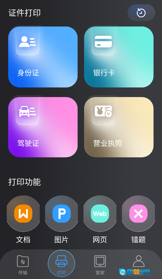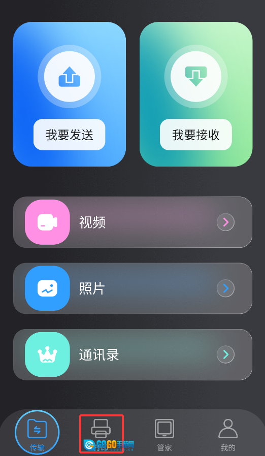 1、启动后,点击底部“打印”图标,进入多功能打印界面。