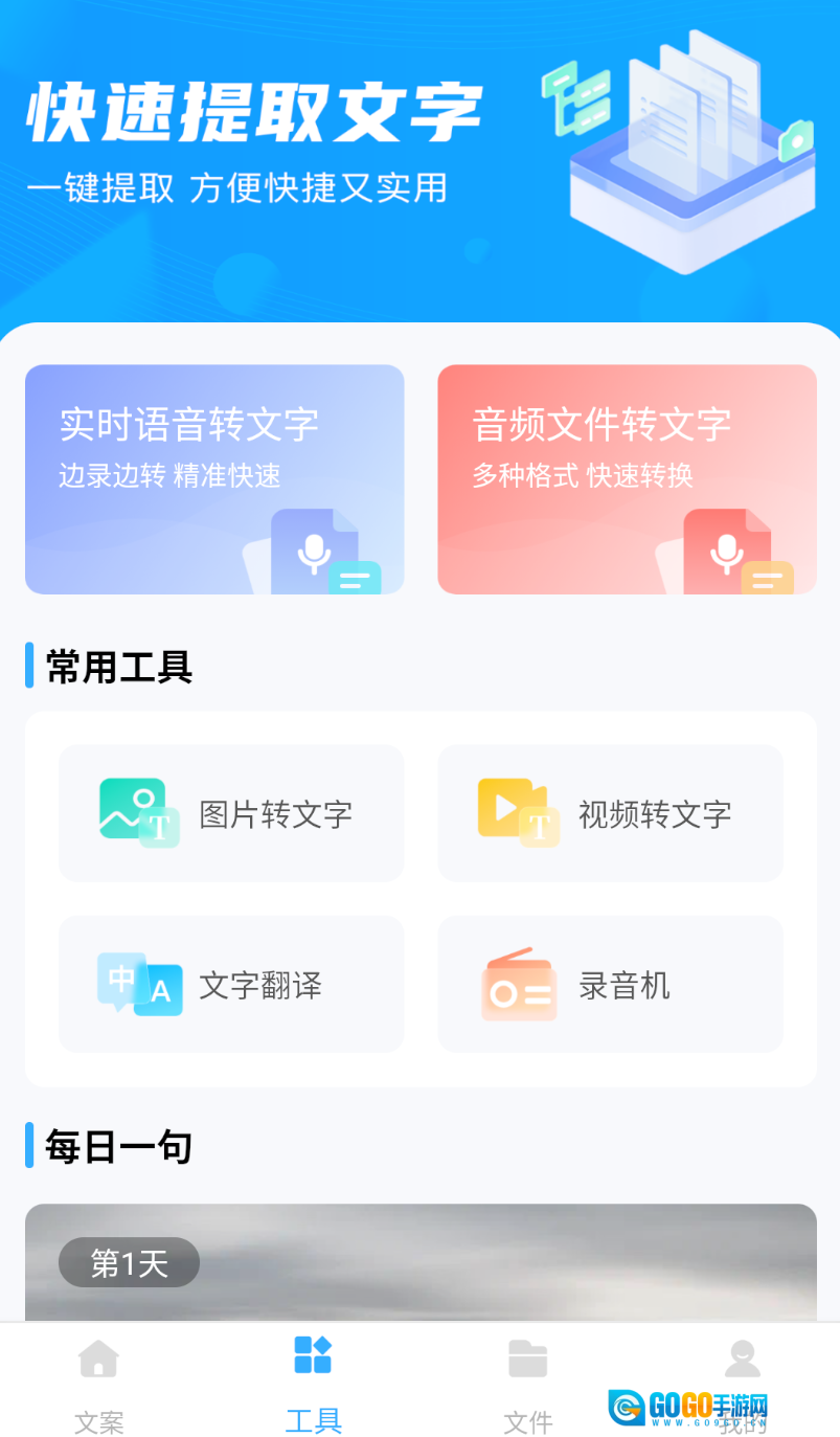1、安装获取:打开手机应用商店,搜索 “文案君” 并完成安装,点击图标进入软件主界面。
