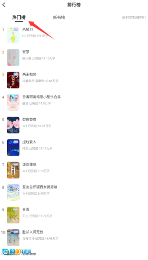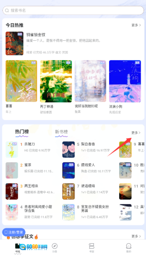 2、在展开的页面中选择"热门榜单"栏目,浏览当前最受欢迎的小说作品推荐列表。