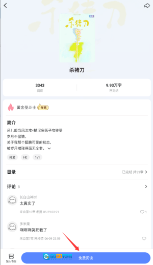 3、找到感兴趣的小说后,点击"免费阅读"按钮即可直接开始浏览作品内容。