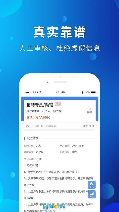 4、真实可靠:所有岗位经过严格审核,确保企业资质与招聘信息真实有效,让求职更安心。