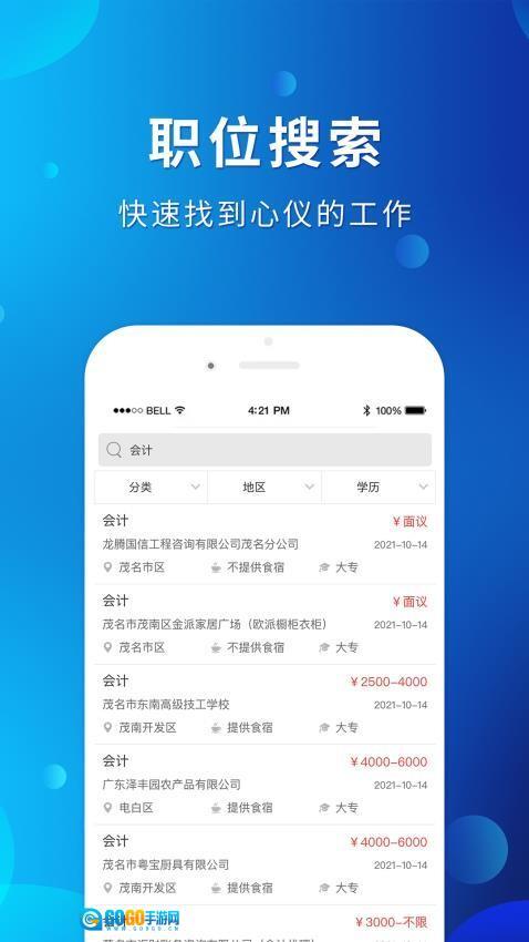 茂名招聘网这个找工作挺实用的,茂名本地岗位更新快。会计、设计这些常见工作都有,信息真实靠谱。投完简历进度随时查,面试通知不漏接。如果你有想在茂名找工作的,下个用用挺合适。操作简单,推荐也精准,赶紧来试试吧。